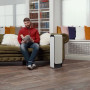 At full mining capacity, Heatbit Mini uses 300 watts. The energy consumed for mining turns into heat to keep you cozy on cool days (about 1023 BTU/h). For extra warmth on colder days, Heatbit offers a heating boost up to 1,300 watts (about 4433 BTU/h). During summer, when using Heatbit Mini solely for air purification, it consumes less than 50 watts.